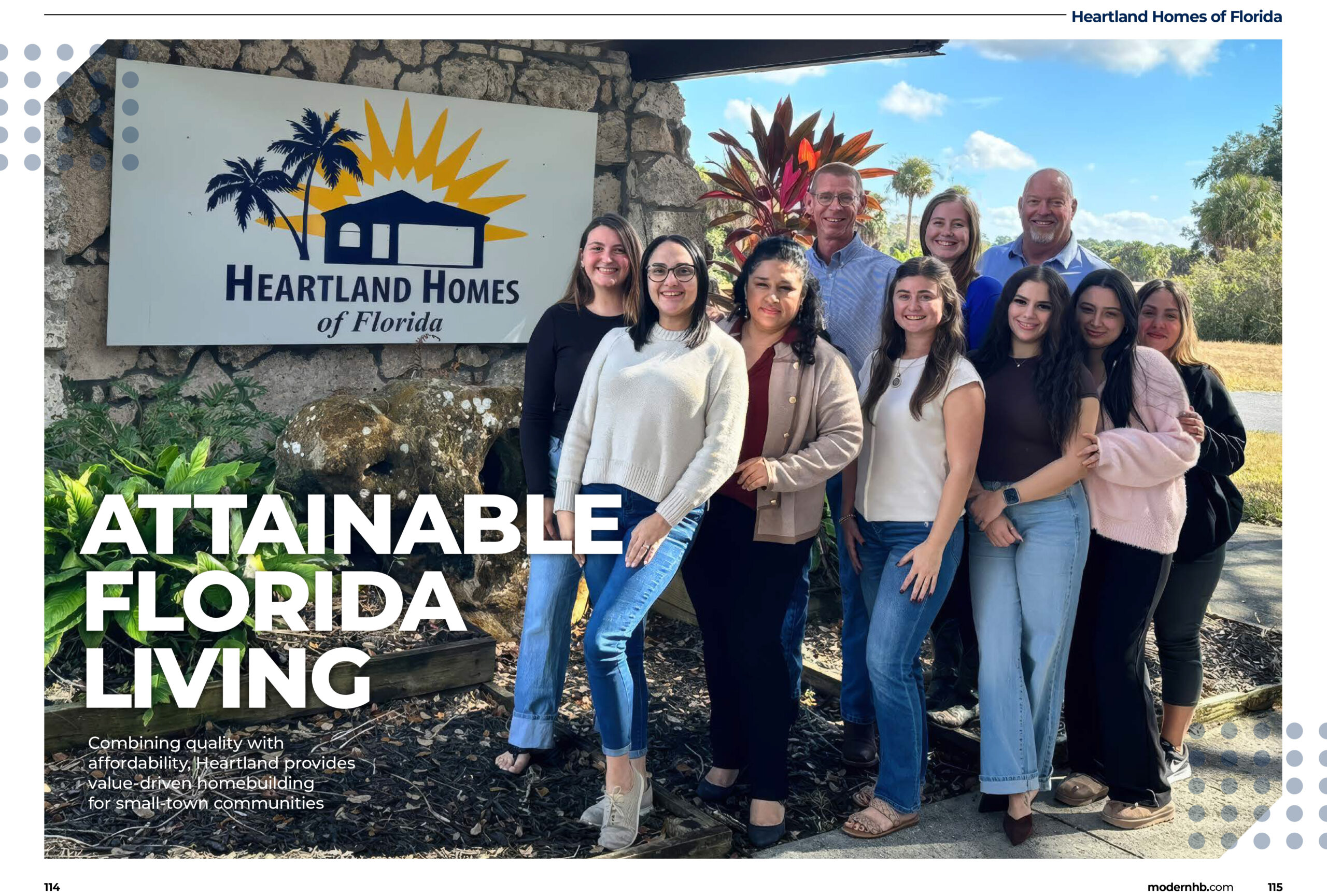 Preserving this local, relationship-driven culture has been integral to the longevity andgrowth of the company and has helped Heartland reach its impressive ten-year milestone, combined with regional focus and a commitment to value, which it plans tocontinue championing into 2026. “Going forward, our priorities center on deepening rather than diluting our business model,” Kevin reveals. “We want to maintain affordability by refining floor plans, managing construction costs, and leveraging financing options such as FHA and USDA where buyers qualify. Operationally, we are also focused on supporting our construction teams and trade partners with the systems and scheduling tools they need to keep build times predictable and quality consistently high. Over the next three to five years, we envision Heartland being the builder of choice in Florida’s interior counties – recognized not just for price, but for reliability, product quality and customer care.